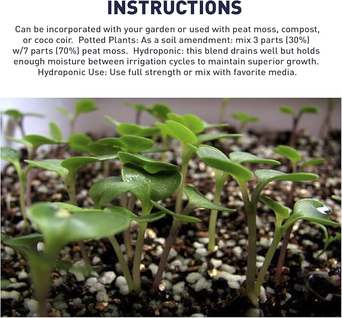 - INSTRUCTIONS – Can be incorporated with your garden or used with peat moss, compost, or coco coir. Potted Plants: As a soil amendment: mix 3 parts (30%) w/7 parts (70%) peat moss. Hydroponic: this blend drains well but holds enough moisture between irrigation cycles to maintain superior growth. Hydroponic Use: Use full strength or mix with favorite media.