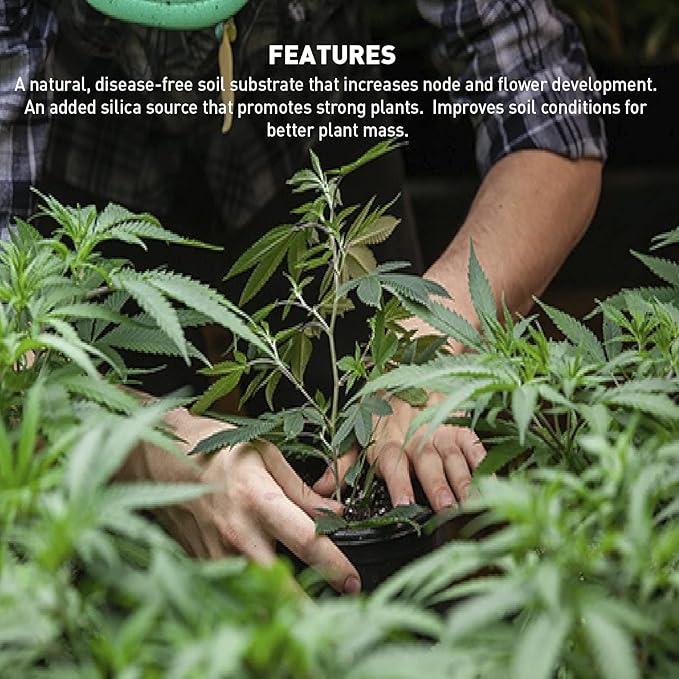 - FEATURES - A natural, disease-free soil substrate that increases node and flower development. An added silica source that promotes strong plants. Improves soil conditions for better plant mass.