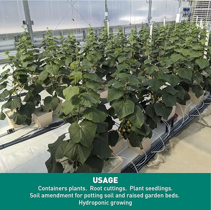- USAGE - Containers plants. Root cuttings. Plant seedlings. Soil amendment for potting soil and raised garden beds. Hydroponic growing