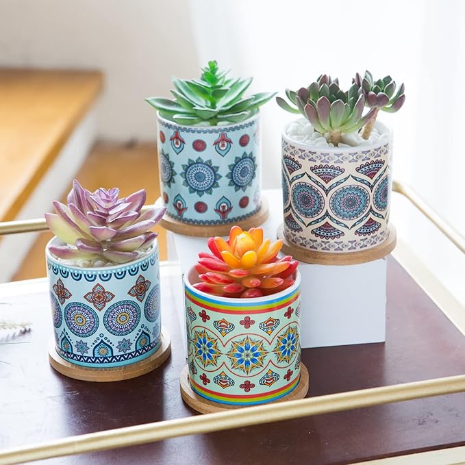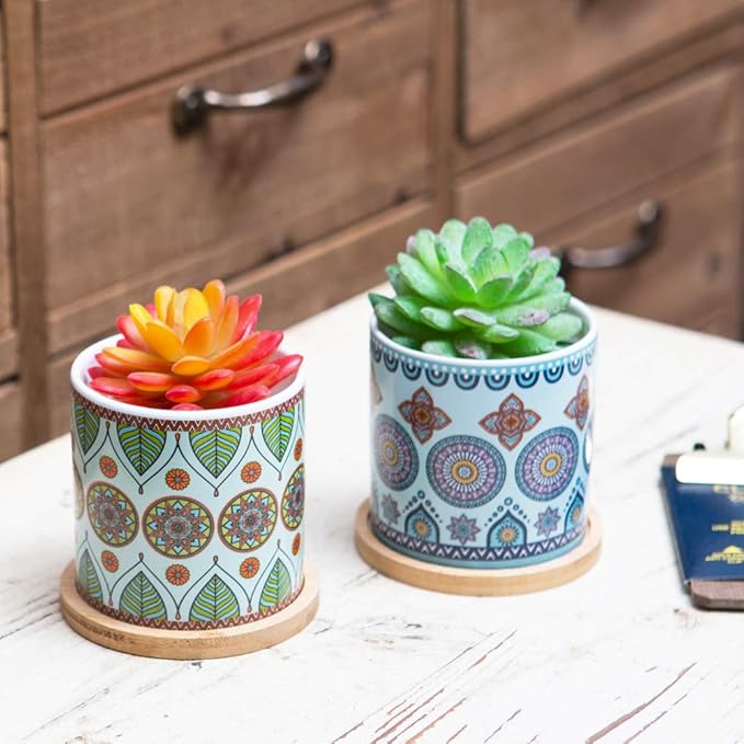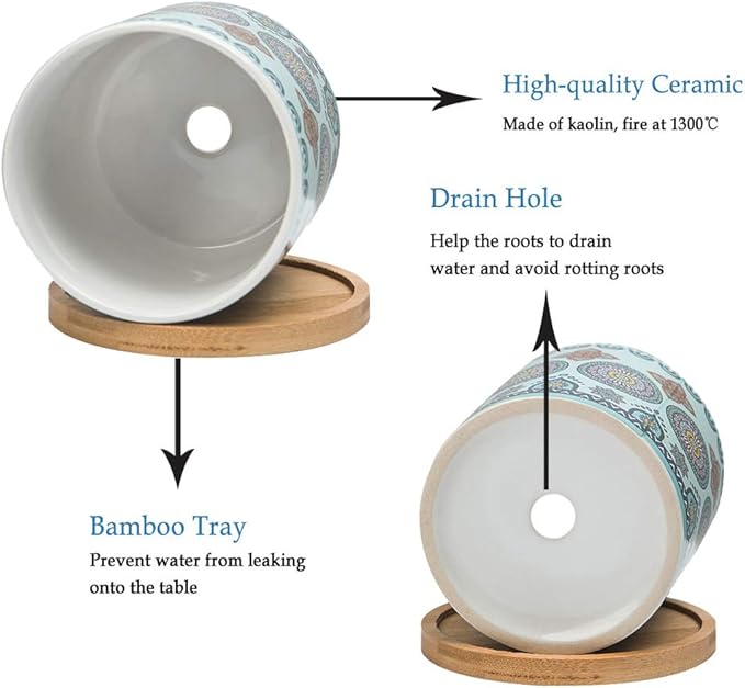 - 【High-Quality】: The mandala planters are made of high-end durable ceramics that are baked at high temperatures to ensure the color doesn't fade over time. The sturdy, smooth surface resists scratches, and the vibrant colors look like new for a long time.