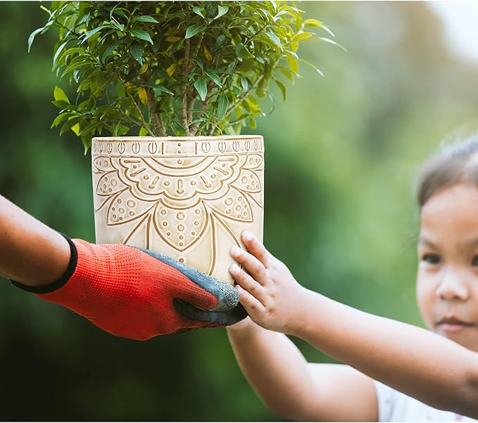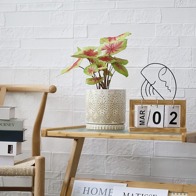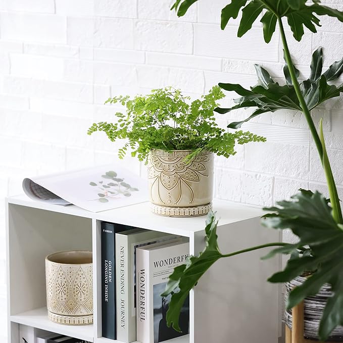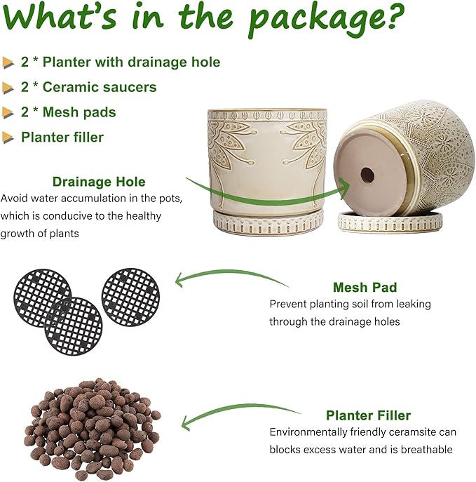 6 Inch Indoor Plant Pots with Drainage Holes and Saucers, Ceramic Planter for Plants, Flower Pot - Set of 2