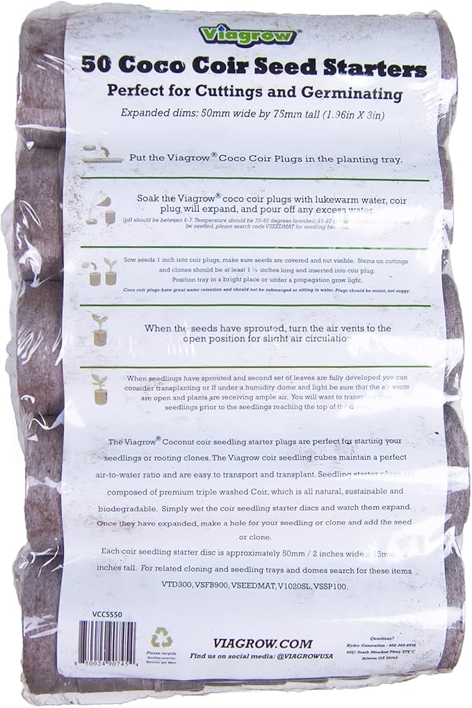 - [EASY TO USE] Viagrow coco coir seed starters are incredibly easy to prepare. Simply add water to watch your expandable coco discs expand in seconds. Whether you’re a professional grower or a beginner, these eco-friendly planting discs offer a quick and straightforward setup for your plants.