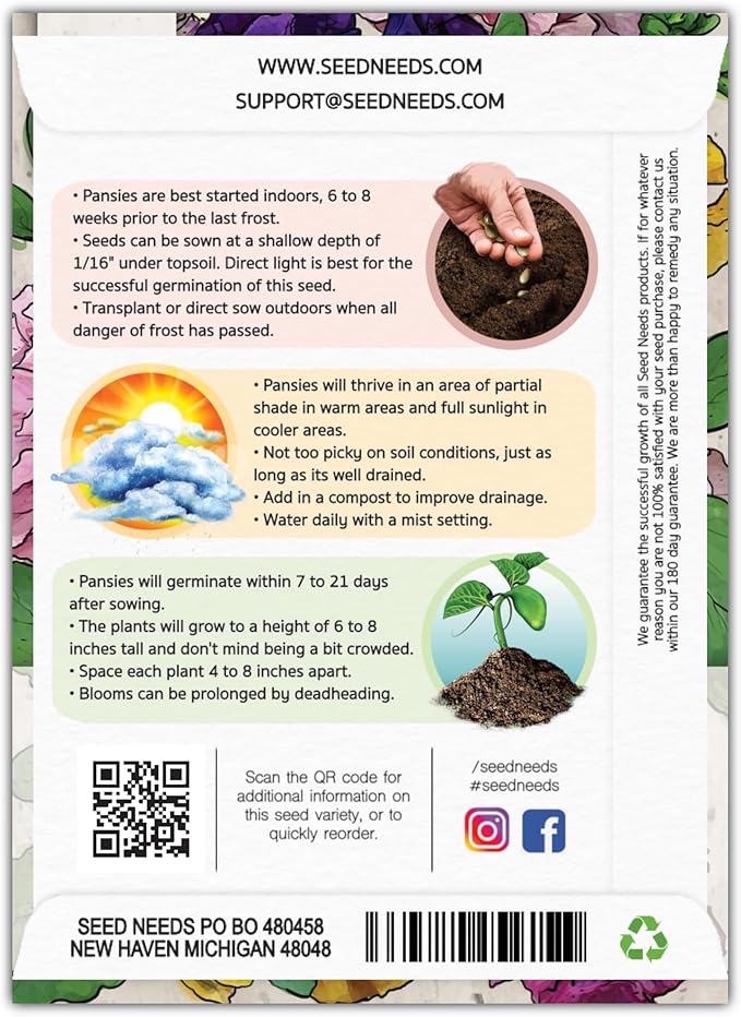 - Freshness - All Pansy seeds are packaged in tear resistant and moisture resistant packaging. This keeps the seeds a whole lot fresher than the competitions selection!