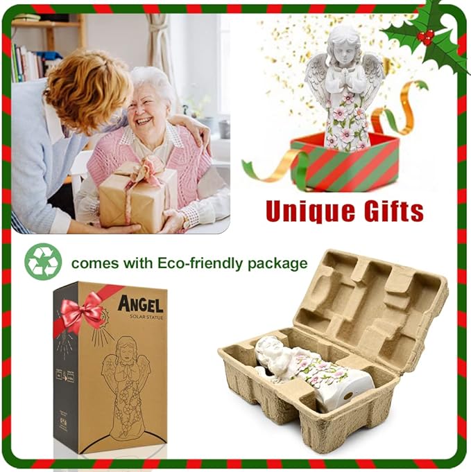 - A Great Garden Gift:The solar garden statue comes in his own beautifully designed box. A perfect gift for Mom;Grandma;Wife;Daughter;Sister;Aunt;girlfriend;wedding;birthday;Mothers Day;Fathers Day;Valentines Day and Christmas