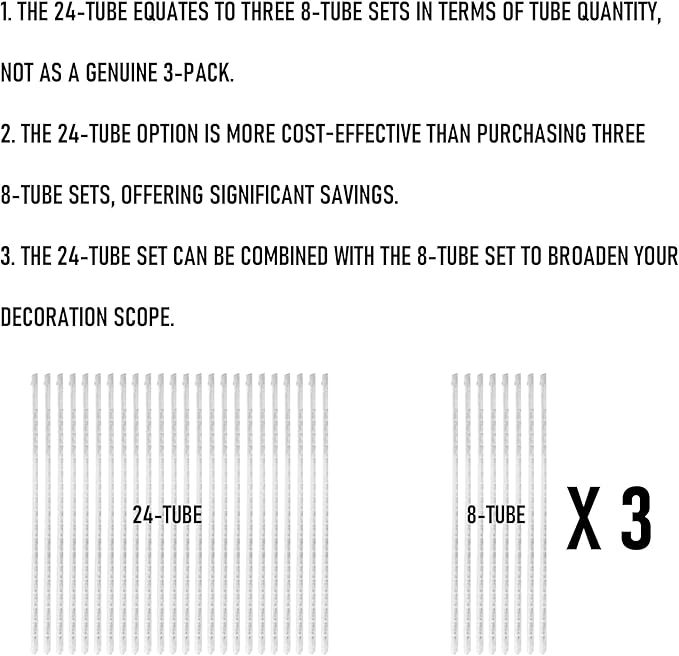 - Dimensions: Each Dazzle Bright meteor shower rain light has 24 tubes, each tube is 30 cm / 12 inch long, each tube is independent from other tubes. The string wire between eath tube is 14 inch, each light has 16.4 FT lead wire, allow you to connect the power conveniently.