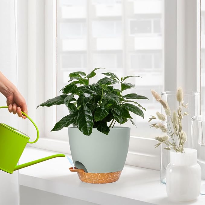 - Long-lasting Self-Watering: Reservoir at the bottom of the pot stores water for up to a week or longer without frequent watering.
