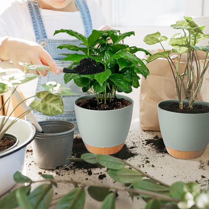 GARDIFE Plant Pots Set of 2 Pack 8 inch,Planters for Indoor Plants with Drainage Holes, Modern Decorative Flower Pots for All House Plants, Flowers, Green
