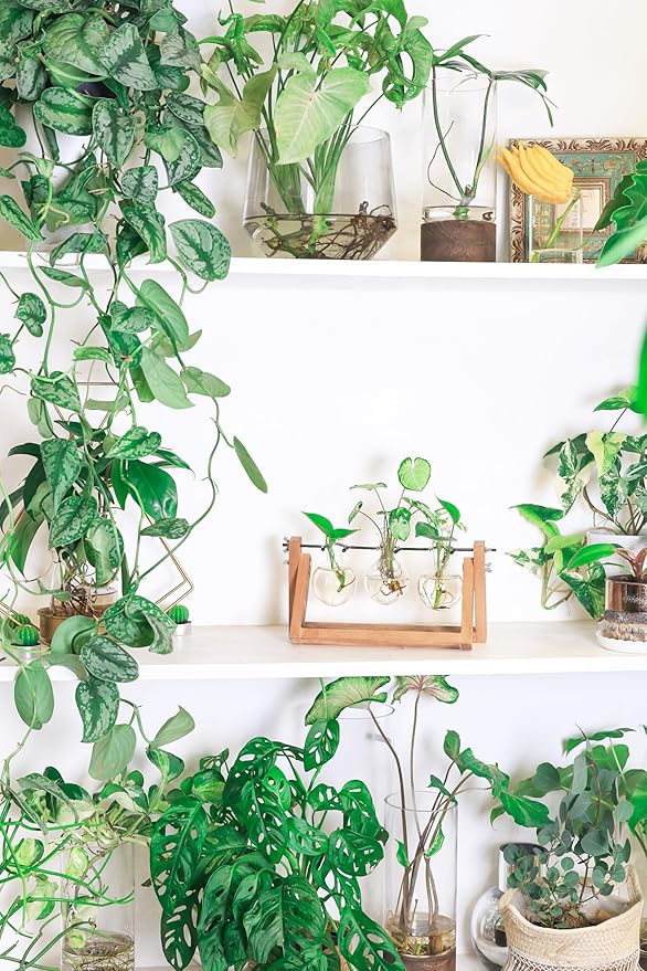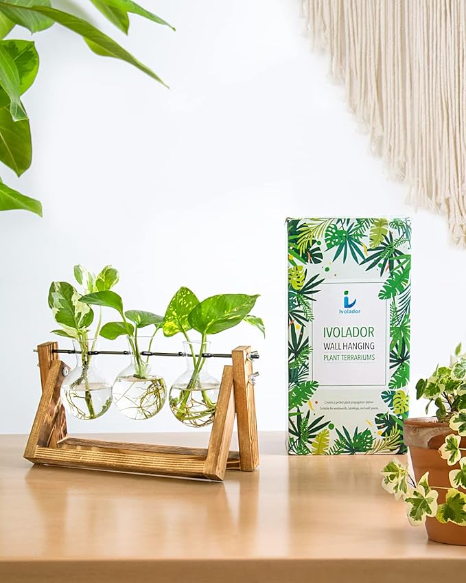 - ♥ 𝐏𝐥𝐚𝐧𝐭𝐬 𝐏𝐫𝐨𝐩𝐚𝐠𝐚𝐭𝐢𝐨𝐧 𝐒𝐭𝐚𝐭𝐢𝐨𝐧𝐬:Plants propagation stations ,Vintage design wooden stand with 3 mini bulb shaped bottles. Smooth surface, good permeability and beautiful shape, perfect for plant cutting!Propagates your plant's babies in style, bulb glass container with plenty of room for plant's roots and all are visible for observing its growth condition.