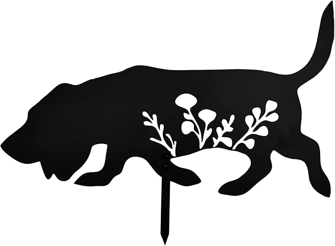 - 【CUTE DESIGN】 Our metal dog garden art is designed with a cute black dog hunting in the garden. The exquisite laser cutting technology of this metal wall decor makes the wildlife scene looks lifelike.