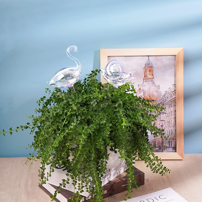 NiHome Glass Plant Self Watering Bulbs 3-Pack Iridescent Pearl Home Potted Planter Watering Bulbs Insert Decorative Devices Vacation Automatic Watering Spikes Indoor and Outdoor (Swan, Snail & Bird)