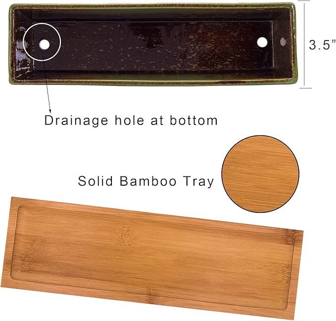 - 【Dimension】The package includes a rectangle succulent planter pot with bamboo tray in perfect size: 12 inch(L)*3.5 inch (W)* 2.7 inch (H). For any quality problems, please feel free to let us know. Artketty will never disappoint any customer.(PLANTS NOT INCLUDED)