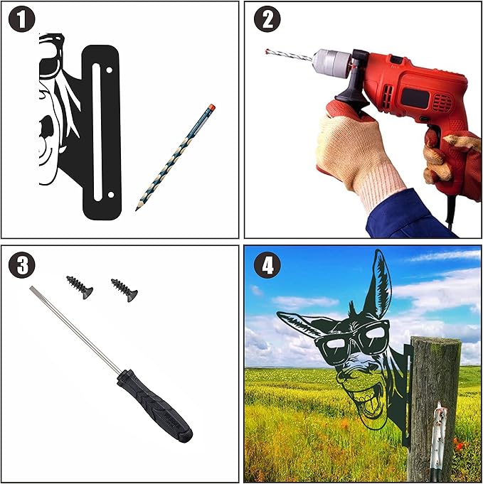 - Easy to Use--The end of these Donkey yard art stakes is with two srews tip,which can be easily inserted into the with a small force and not easy to loosen.