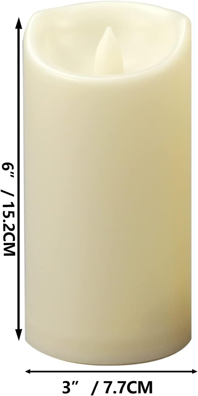 - Easy to use with timer. There is a built-in daily cycle timer inside each battery LED candle. Once the pillar candle is turned on, the timer starts to work. The LED flameless candle stays on for 6 hours and turns off automatically for the next 18 hour. This 6-hour on, 18-hour off cycle repeats every day. The daily cycle timer saves the troubles of turning on and off this flameless LED candle light manually.