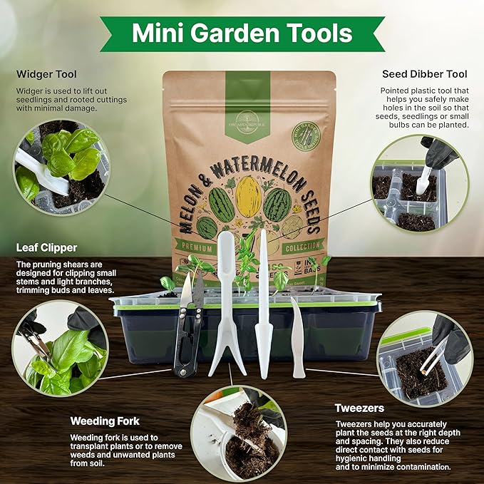 - Gardening Kit: 7 Melon & Watermelon Seeds Variety Pack NON GMO Heirloom Seeds LESS THAN $2.00 PER SEED VARIETY PACK 480+ seeds including: Cantaloupe Imperial, Cantaloupe Minnesota Midget, Melon Canary Yellow, Melon Honeydew, Watermelon Crimson Sweet, Watermelon Jubilee, Watermelon Sugar Baby.