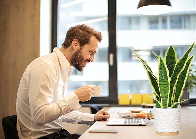 - Material: Fake snake-shaped plant is made of durable high quality polyester material, which is safe and easy to clean and not easy to fade. The bottom is a ceramic pot, the body of the pot has a frosted effect, there are artificial plants and small white stones in the flowerpot,, which makes the whole artificial Sansevieria plant brighter, more vivid, and natural and beautiful.