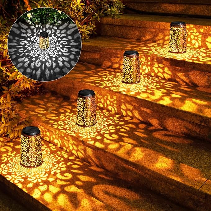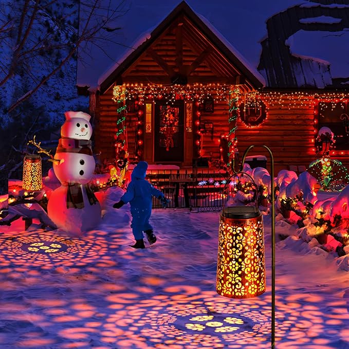 - Beautiful Pattern - Perfect Outdoor Decor: cute solar outdoor lantern with unique hollowed-out design. You can hang it on the porch, tree, pergola with the hangring, or placed on the tabletop, lawn, ledge. Present a vivid pretty pattern on the table or the ground, make your patio special. Perfect for garden, yard, backyard, pathway, walkway, courtyard, terrace, balcony, home decoration and as a unique gift for any occasion like Easter, Christmas, Wedding, Party, Halloween, Birthday, etc.