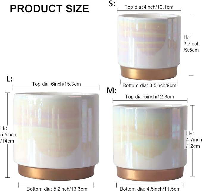 • Rainbow Pearlescent Glazed Design With Drain Holes: The rich color of this ceramic flower pot is covered a rainbowl look. Deep planting space promotes root growth to keep plants healthy. Large drain holes are good for draining, it is suitable for orchids, succulents, cacti, other flowers and green plants, perfect for home decoration.