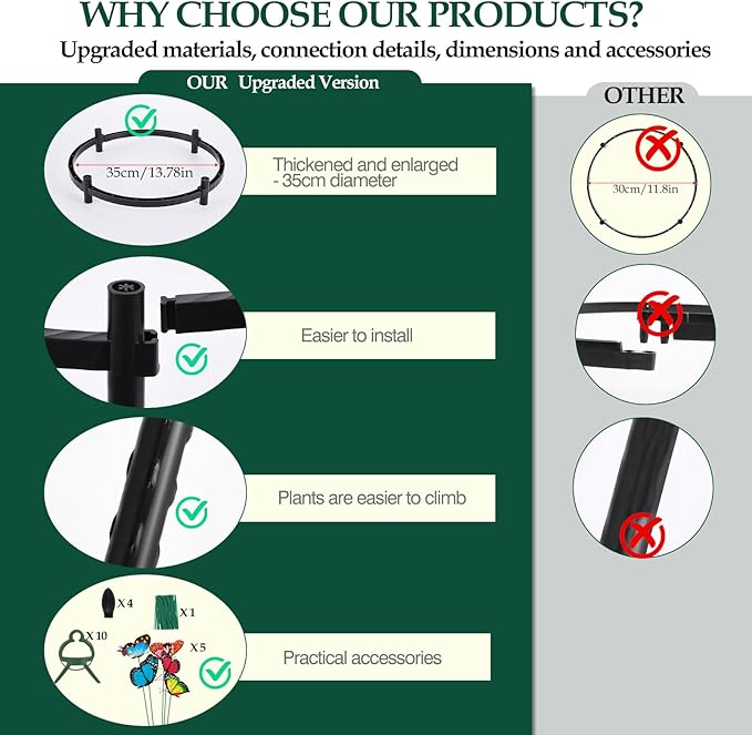 - Vegetables and Climbing Plants Trellis for Garden: The most important advantage - Exclusive double-layer steel pipe built-in interface upgrade design, which makes the garden trellis more sturdy and can carry heavy loads, it is an ideal tomato trellis.