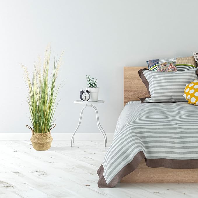 - 1.This faux plant features close to natural green grass with 5 white silk reed flowers, all inside a durable and solid flowerpot. Artificial pampas grass is 47 inches high.base with a black plastic pot in 5'' dia ,5.9''high.it’s easy to put it in a nice bigger planter as desired.