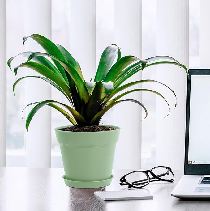 WOUSIWER 16 Pack 6 inch Plastic Planters, Plastic Indoor Planter Flower Pots, Heavy Duty and Stylish 6 Inch Plant Pots for Indoor Plants with Drainage Holes and Tray for Plants Flowers, Green