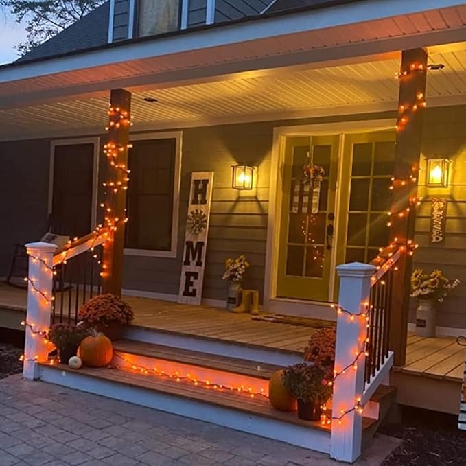 - Outdoor Christmas Decor Solar String Lights: 100 LED starry-style string lights with orange lights accent your space with a unique, inviting glow. 33ft length is perfect to put around a garden or porch railing. In the dark, the wire fades to invisible, leaving only the fairy lights, create a classy and romantic atmosphere.
