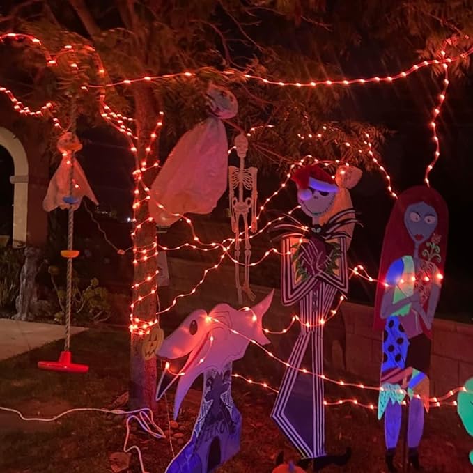 - Versatile Application: You will get 4*100 LED orange solar fairy lights, 4*stake, 4*stand. Whether you're decorating your yard, lawn, or garden. The halloween solar fairy lights are the perfect choice. Transform your home into the most eye-catching one in the neighborhood with orange rope lights for christmas decorations.