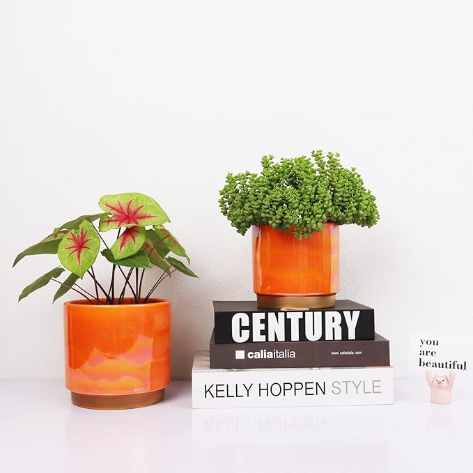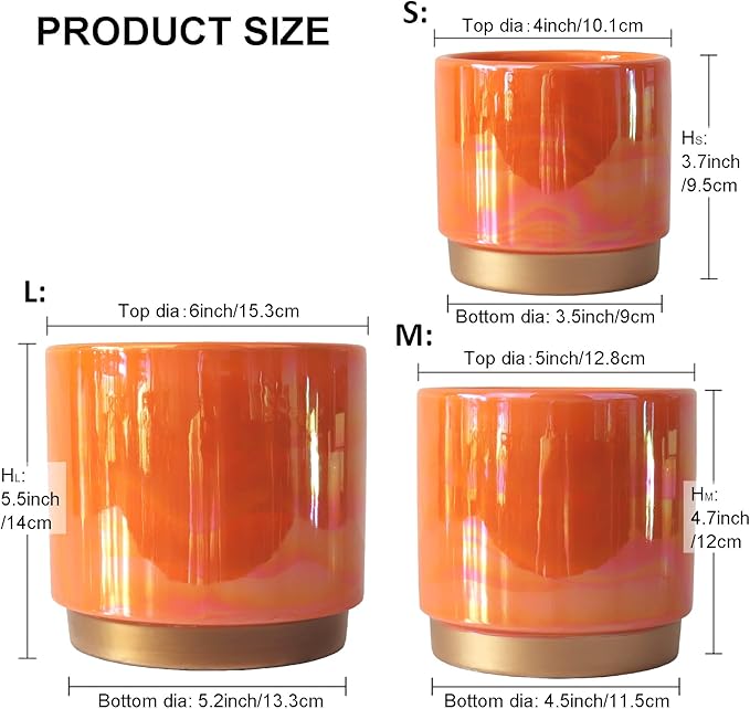 - Rainbow Pearlescent Glazed Design With Drain Holes: The rich color of this ceramic flower pot is covered a rainbowl look. Deep planting space promotes root growth to keep plants healthy. Large drain holes are good for draining, it is suitable for orchids, succulents, cacti, other flowers and green plants, perfect for home decoration.