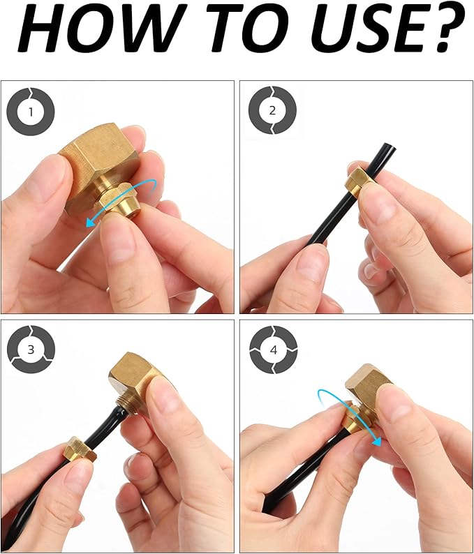 - PACKAGE INCLUDED - This adapter set includes 4 pieces 3/4" FHT to 1/4" drip irrigation tube connectors. Each piece contains a rubber washer which is already installed inside the adapter. Additional 4 rubber gaskets with net are also available in the parcel.