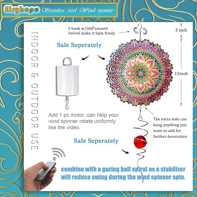 - 【 New Inspiration for Wind Spinners 】This decorative spinner is sure to inspire your decorating ideas. Mandala spinners can also be used as hanging wall decorations. And you can find new uses for wind spinners, such as a unique holiday decoration to add to the holiday spirit and attract attention.