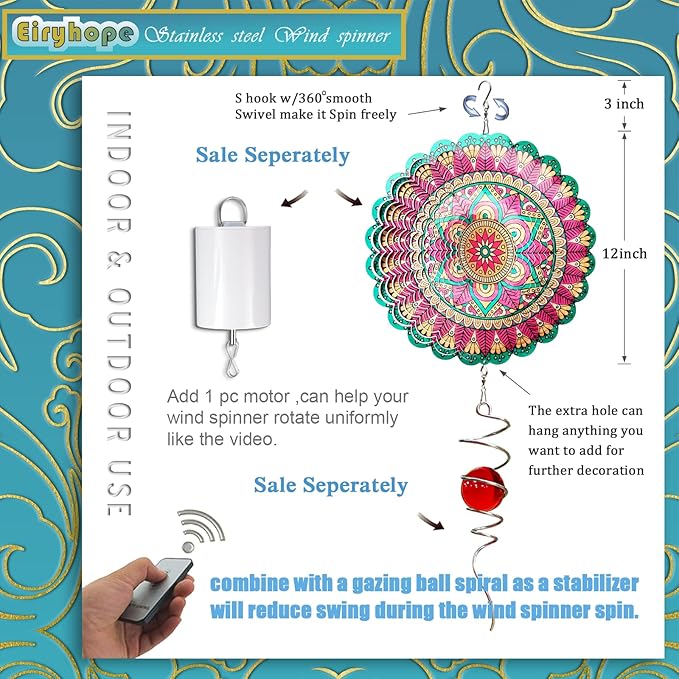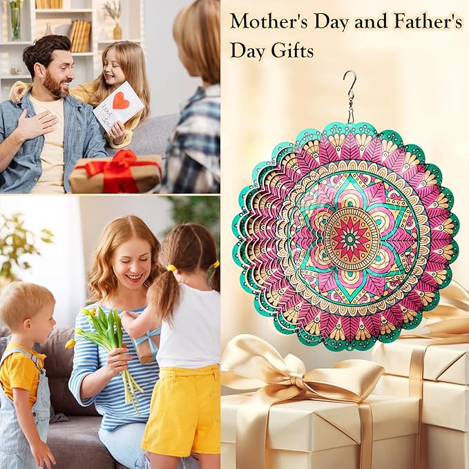 - 【 Easy to Use 3D Wind Spinner 】The garden wind spinner is easy to shape and spin. Its 3D design makes it easy to transform into a 3D hanging wind sculpture. This mandala wind spinner's ingenious metal construction catches more breezes to spin. The 12inch wind spinner is an eye-catching focal point.