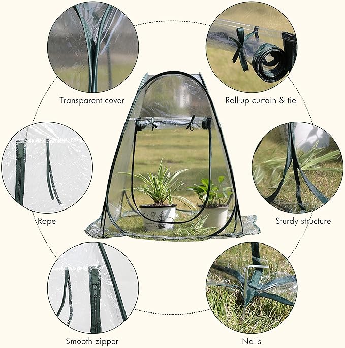 - Functions - The pop up grow house is waterproof and UV protected, provides a warm and humid environment for plants and extends growing season. Ideal for flowers, vegetables, herbs and potted plants.