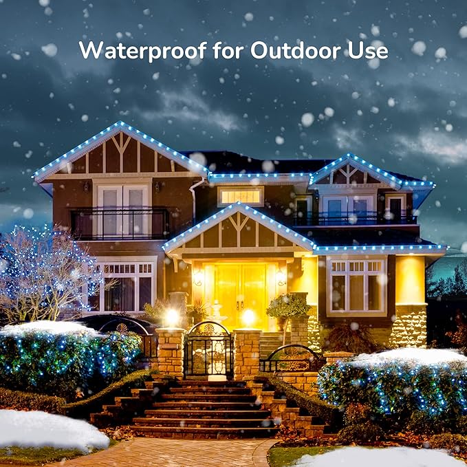 - 【Wide Application】UL Listed, waterproof for outdoor indoor use. Hanging the blue string lights wherever you want to decorate, adding some twinkle to your holiday decor.