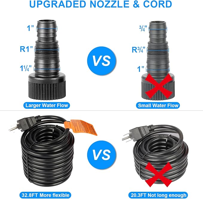 Outdoor 1800Gph-100W 32.8FT Small-Pond Water-fall & Kio Fish Fountain-s &Garden Pump Submersible IPX8: Long 32.8FT Cord Smart-er & Quieter Duck & Yard &Patio Ponds Pumps, 1 Barrier Pump Bag