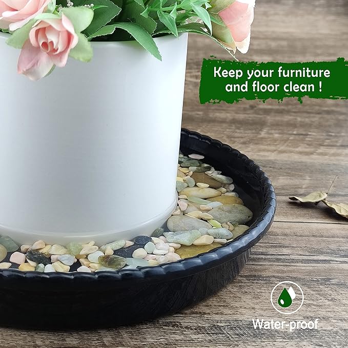 - 【Ridges Design】- Ridges on the surface of plant tray elevate your pot slightly to avoid getting root rot,while simultaneously allowing air to flow into the pot for maximum plant health.The black color perfect match with all your plant pot and furnitures.