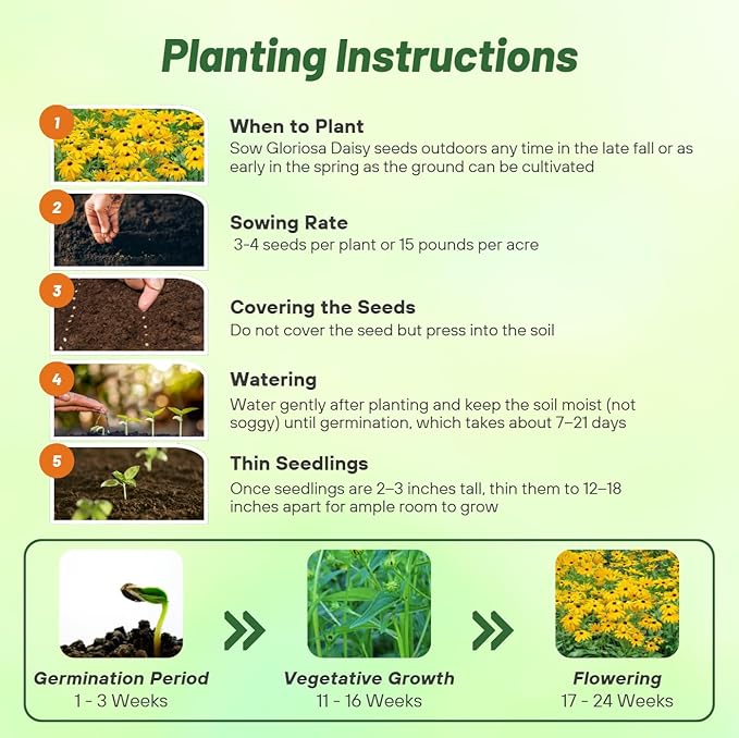 - SELF-SEEDING & LOW MAINTENANCE: Gloriosa Daisies naturally re-seed, providing beautiful blooms year after year with minimal care. Simply leave a few flowers to go to seed for an effortlessly recurring garden display each season.