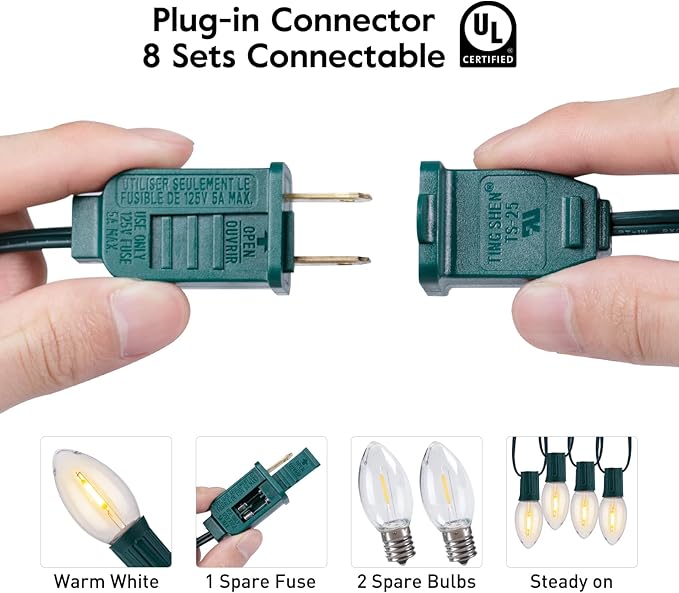 - Special Feature : UL Listed LED C9 String Lights, Waterproof, Connectable, Christmas Tree Decorations