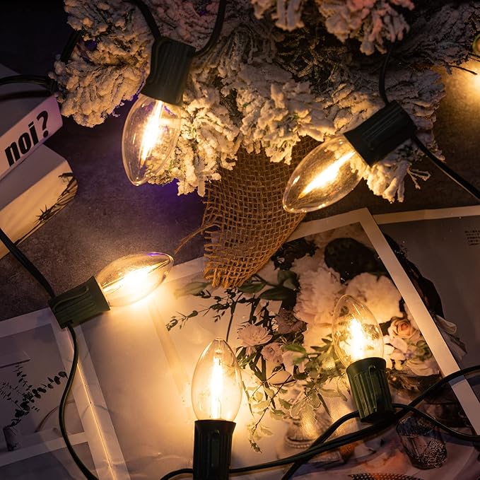- 【Old fashioned appearance and dimmable】C9 Christmas lights follow the shape of old fashioned incandescent bulbs with warm white lighting effect,creating a warm and harmonious and comfortable atmosphere, lighting up your life and creating exclusive memories for you