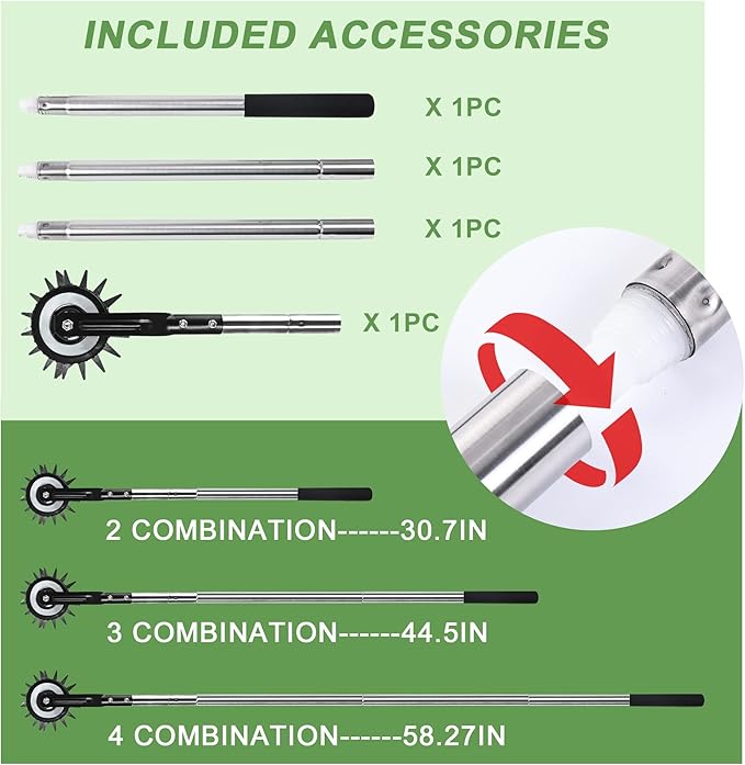 - Adjustable height: Rotary edger has three heights can be adjusted to different length: 30.7 INCH / 44.5 INCH / 58.3 INCH; This lawn edger tool is suitable for people of different heights, and also suitable for garden work in different scenes. This height can perfectly match your habit of using tools.