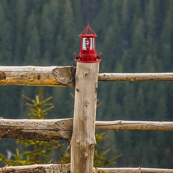 Operitacx Solar Powered Rotating Lighthouse Lamp - Waterproof Solar Lighthouse Outdoor Garden Decor, Led Yard Light for Patio, Lawn, and Pathway (Red)