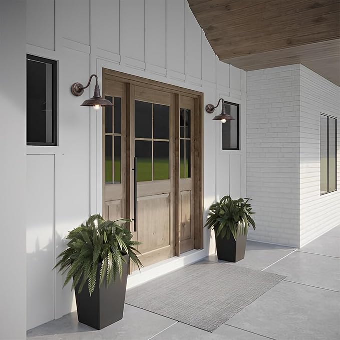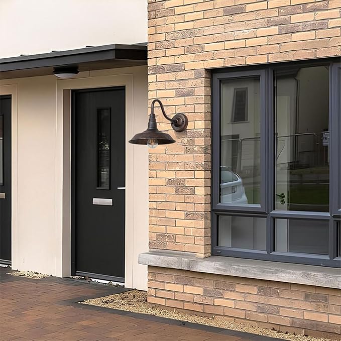 - ★【Gooseneck Outdoor Wall Sconce】Outdoor barn light with elegant gooseneck arm combines vintage and industrial styles, bringing an attractive and classy look to your home, easily sublimate your various decorations and create a pleasant atmosphere.