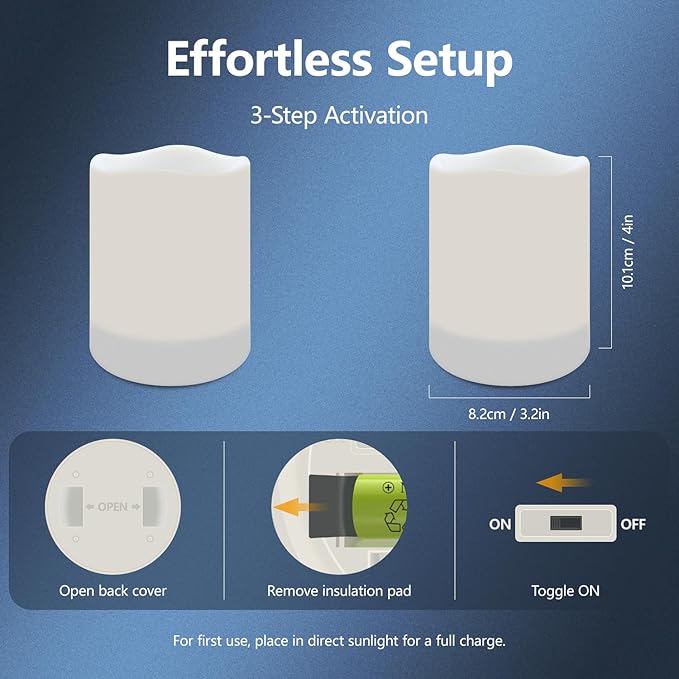 - SAFETY: Flameless candle set you can have perfect ambient evenings with peace of mind; no worries about fire hazards, smoke, messy dripping wax or stained tablecloth. These kid-friendly white flameless candles are a great choice for any family with children or pets who want to make sure that their little ones will stay safe and sound