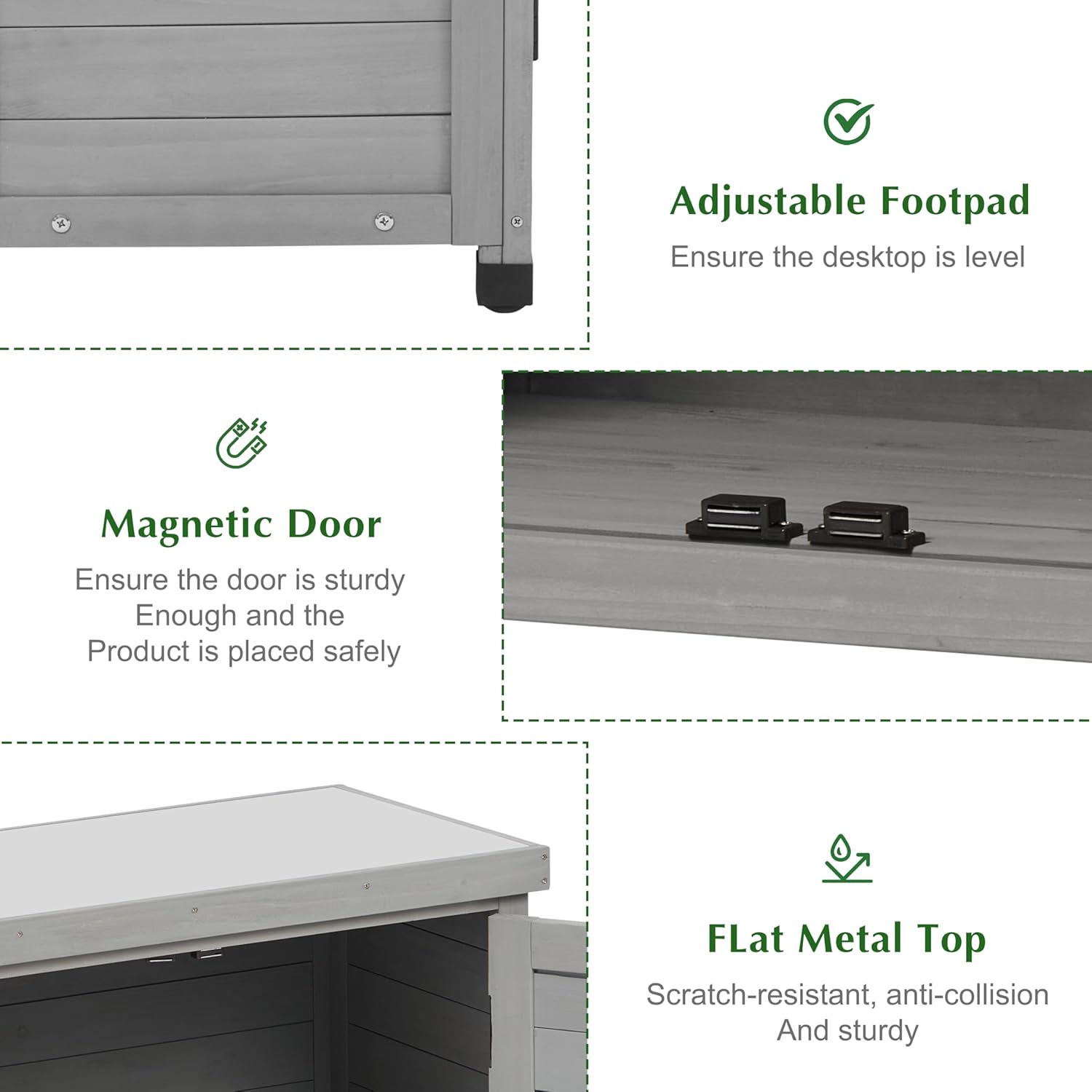 Outdoor Storage Cabinet & Potting Bench Table with Metal Top, Wooden Patio Furniture, Garden Workstation (Classic Grey, 36x31x17in)