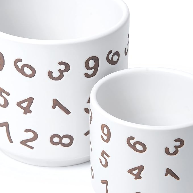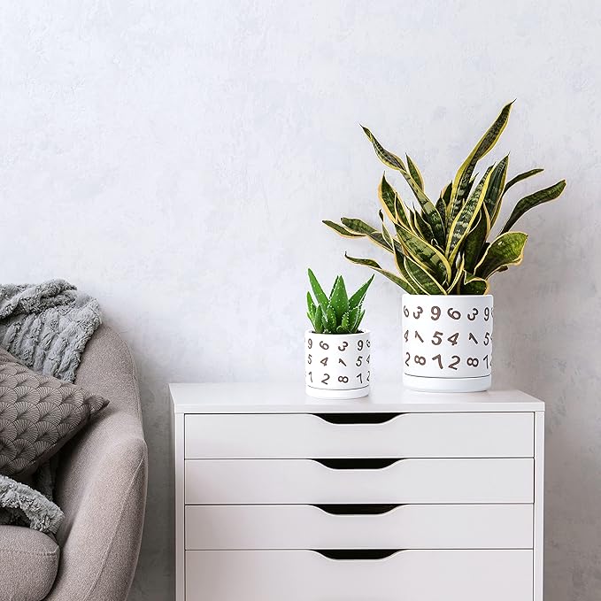 D'vine Dev Set of 2 Ceramic Planter Pots with Drainage Hole and Saucer, 4.5 Inch 6 Inch Plant Pots for Plants Indoor Houseplants, White, 99-B-1