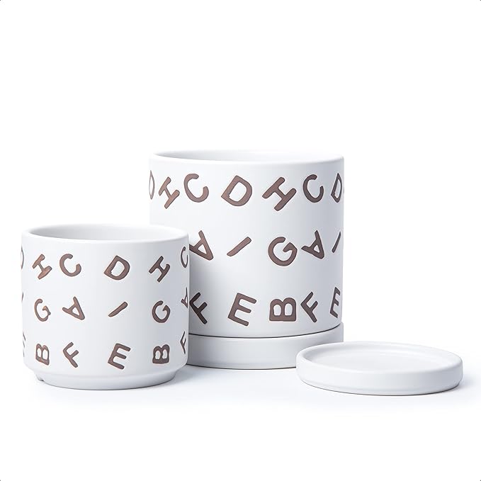 - Showcase your small houseplants or botanicals with set of 2 planter pots with saucers.