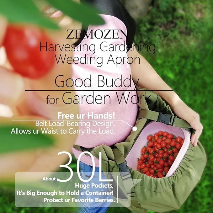 - ☘️Enjoy Harvesting & Weeding☘️ ZEMOZEN gardening apron with pockets for women will carry vegetables, fruits, flowers, or weeds with you. No need for multiple round trips to collect them! No need to carry a harvest basket foraging bag mushroom basket & fruit picker basket for gathering vegetables in the herb garden. - A simple and efficient solution! ☘️Belt load-bearing design makes your waist carry the load, Effectively reducing fatigue.
