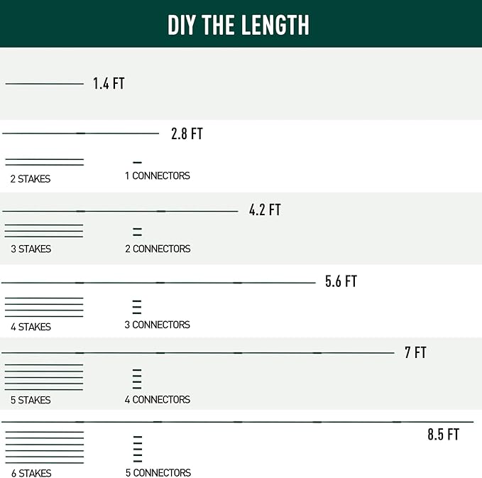 - 【DIY Kit】 This kit contains 20 stakes, each 17" in length and 0.335" in diameter, along with 14 connectors, 14 rotatable clips, 14 plant clips. You can connect two or more stakes to achieve the desired length.