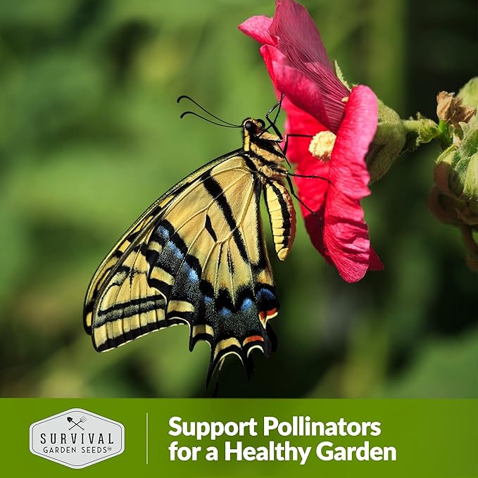 Survival Garden Seeds - Single Mixed Hollyhock Seed for Planting - 3 Packs with Instructions to Plant and Grow Colorful Spikes of Flowers in Your Home Vegetable Garden - Non-GMO Heirloom Variety