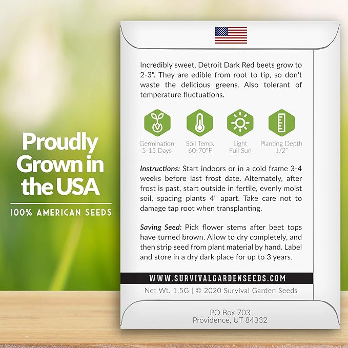 Survival Garden Seeds - Detroit Dark Red Beet Seed for Planting - 2 Packs with Instructions to Plant & Grow Delicious Root Vegetables in Your Home Vegetable Garden - Non-GMO Heirloom Variety Seed