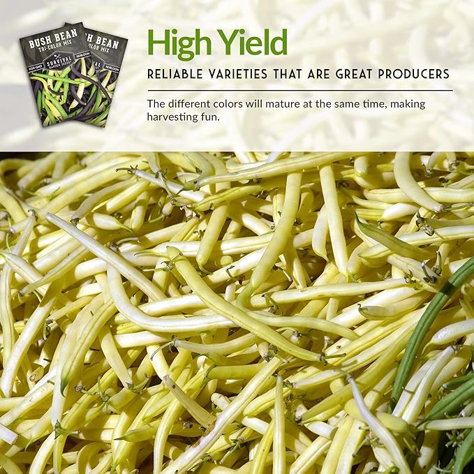 Survival Garden Seeds - Tri-Color Bean Seed for Planting - 3 Packs with Instructions to Plant and Grow Yellow, Purple, and Green Bush Beans in Your Home Vegetable Garden - Non-GMO Heirloom Variety
