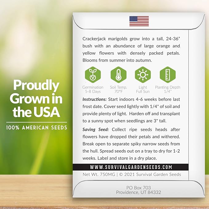Survival Garden Seeds - Crackerjack Marigold Seed for Planting - 5 Packs with Instructions to Plant and Grow in Your Home Vegetable Garden - Non-GMO Heirloom Variety